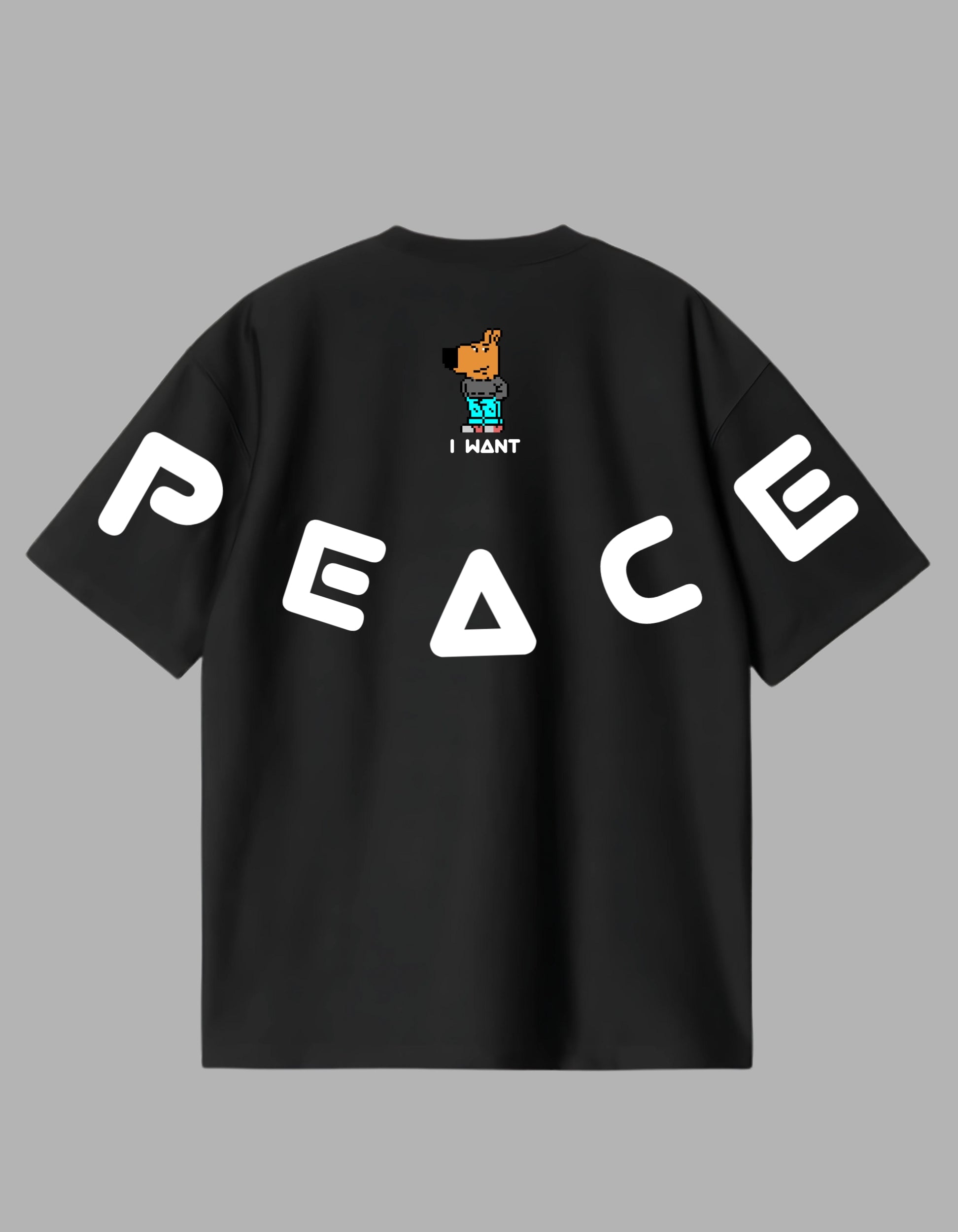 Make a bold statement with our “I Want Peace” Oversized Tee. Designed for those who mix street culture with purpose, this tee combines powerful typography with playful graphic art. The oversized PE▲CE lettering across the back commands attention, while the pixel-style character graphic adds a modern, retro-gaming edge.